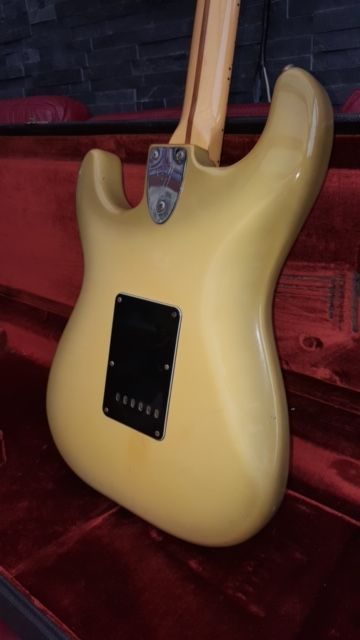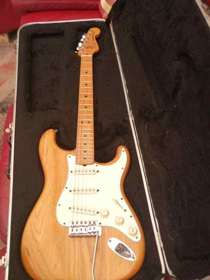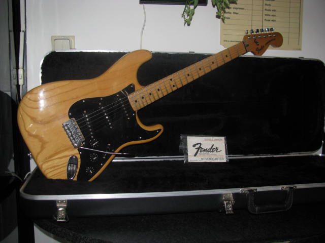 fender gold strat from 1980/81,guitar is original except for the stripped down paint on the body,it is all Natural now and looks amazing.