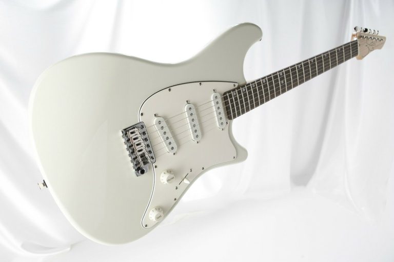 The Ashburn (named after my daughter, Ashley) has a double-cutaway, 13” lower bout body, and an Eastern Hard Maple neck available with multiple fretboard options that feature a 12” radius and 22 Jescar .047” x .095” Nickel Silver frets. The machine screw and threaded Brass insert neck-to-body fastening method not only gives an amazingly strong mechanical bond, but also adds a beautiful complexity to the overtones. The instrument also features my bass-justified top dots for improved playing visibility and front and back contours for playing comfort. The core model Ashburn has a vintage style 6-saddle tremolo bridge, 3 S-style single coil pickups with reversed bridge pickup angle, master volume and tone controls, and a 5-position lever switch.
